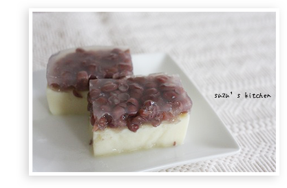 ※ 豆乳寒天と小豆寒天がくっついていません(´Д`ა)残念。
