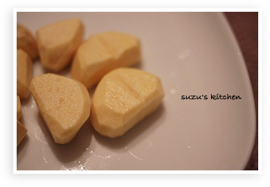 煮汁を捨て砂糖を加えて煮る。